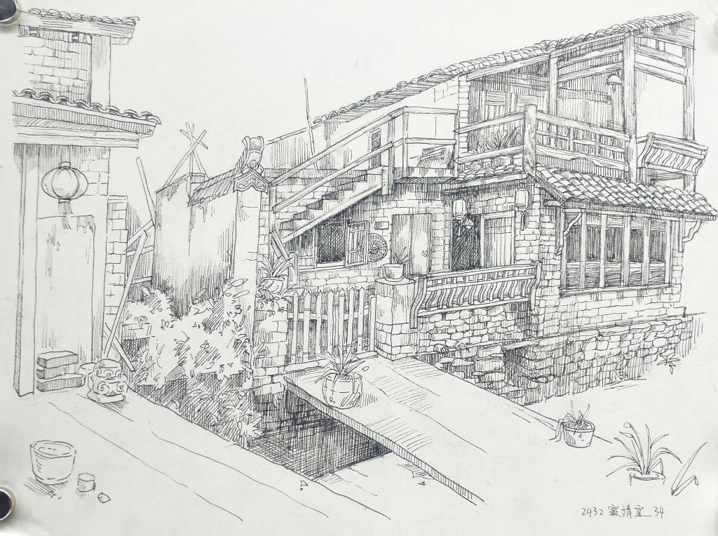 婺源的秋日光景如诗如画,白墙黛瓦的徽派建筑错落于青山绿水间,马头墙的优美线条、木雕门窗的精致纹样与山间的层林尽染、溪畔的炊烟袅袅相映成趣,构成了天然的写生课堂。师生们深入理坑、李坑、溪头等徽派古村落,或席地而坐,或驻足凝望,铅笔在画纸上快速游走,将徽派建筑的古朴韵味、田园风光的自然灵动与村民生活的质朴场景一一定格,在观察与创作中深化了对空间感知与艺术表现力的理解 。
