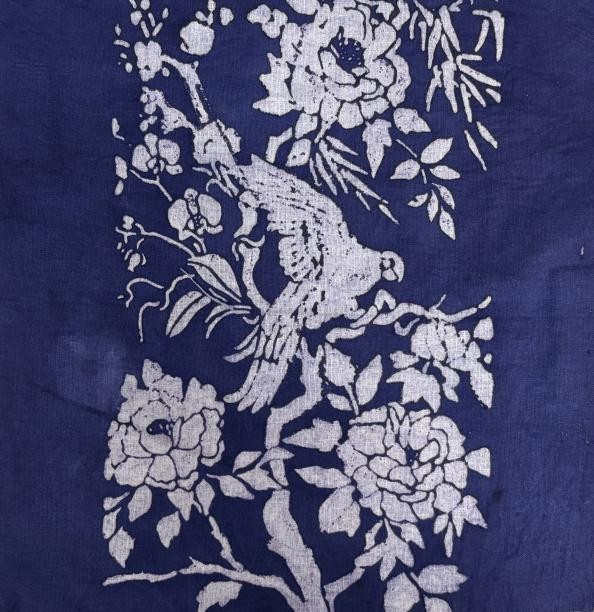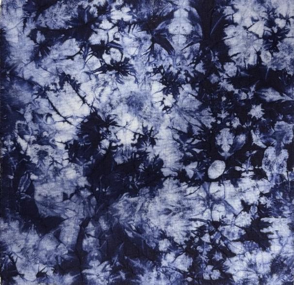 在传统纹样展区,蓝白交织的团花纹样古朴端庄,中式缠枝莲婉转延伸于棉布之上,绽放出跨越时空的静好;扎染作品则借助水与色的自然流淌,渲染出如云似冰的朦胧肌理,每一幅都是不可复制的自然诗篇。