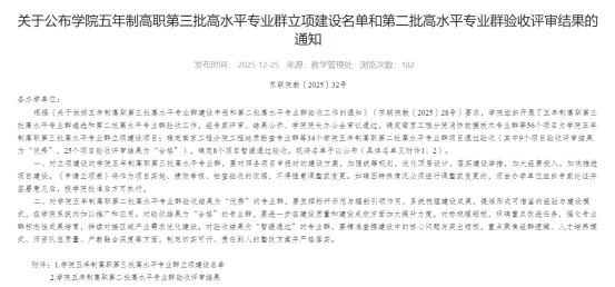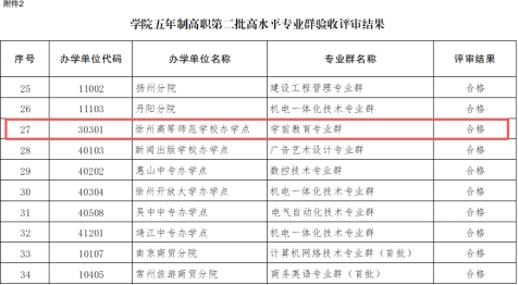 近日,江苏联合职业技术学院五年制高职第二批高水平专业群验收评审结果公布徐州高等师范学校学前教育高水平专业群建设成效显著,顺利通过验收。