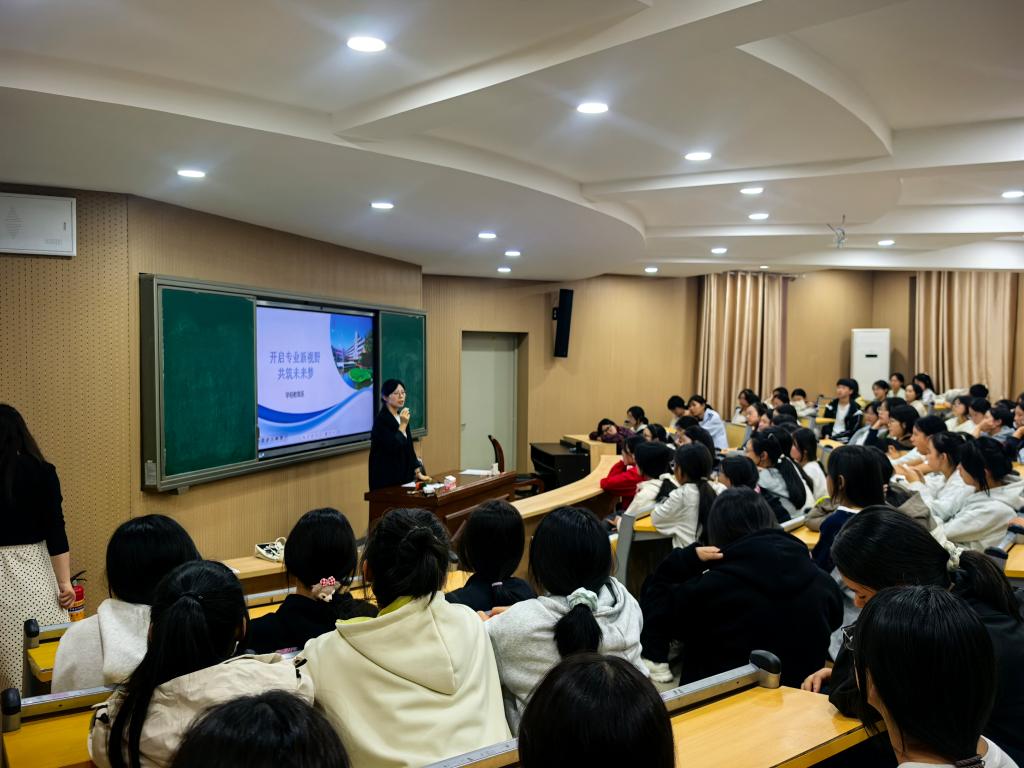 孔繁晶副主任围绕 “岗课赛证” 四个核心维度,结合具体案例,为25级新生系统梳理了五年学习生涯的各模块学习内容及其实践价值;同时从 “学什么、为什么学、怎么学”三个关键层面深入解读,帮助新生清晰把握学习方向,更快熟悉校园环境、适应师范学校的学习节奏。