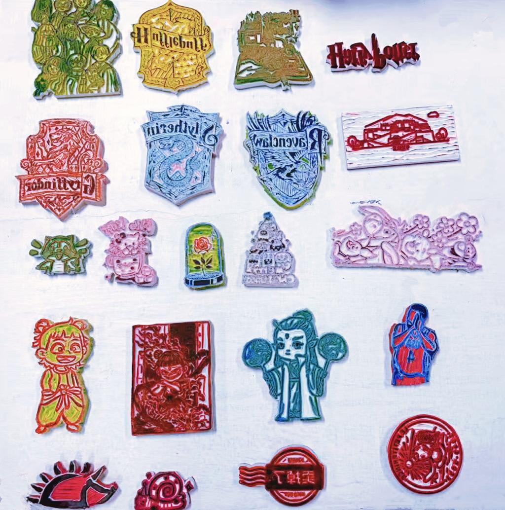 当包裹送达,面对专业的刻刀、橡皮和五彩的印台,徐嘉遥仿佛开启了一场全新的探索。她选的第一个图案是一弯月亮。推刀划过橡皮,熟悉的触感回来了,但这一次,作为休闲体育专业的学生,长期训练赋予她的,是远超从前的沉稳、耐心和对力道的精准控制。