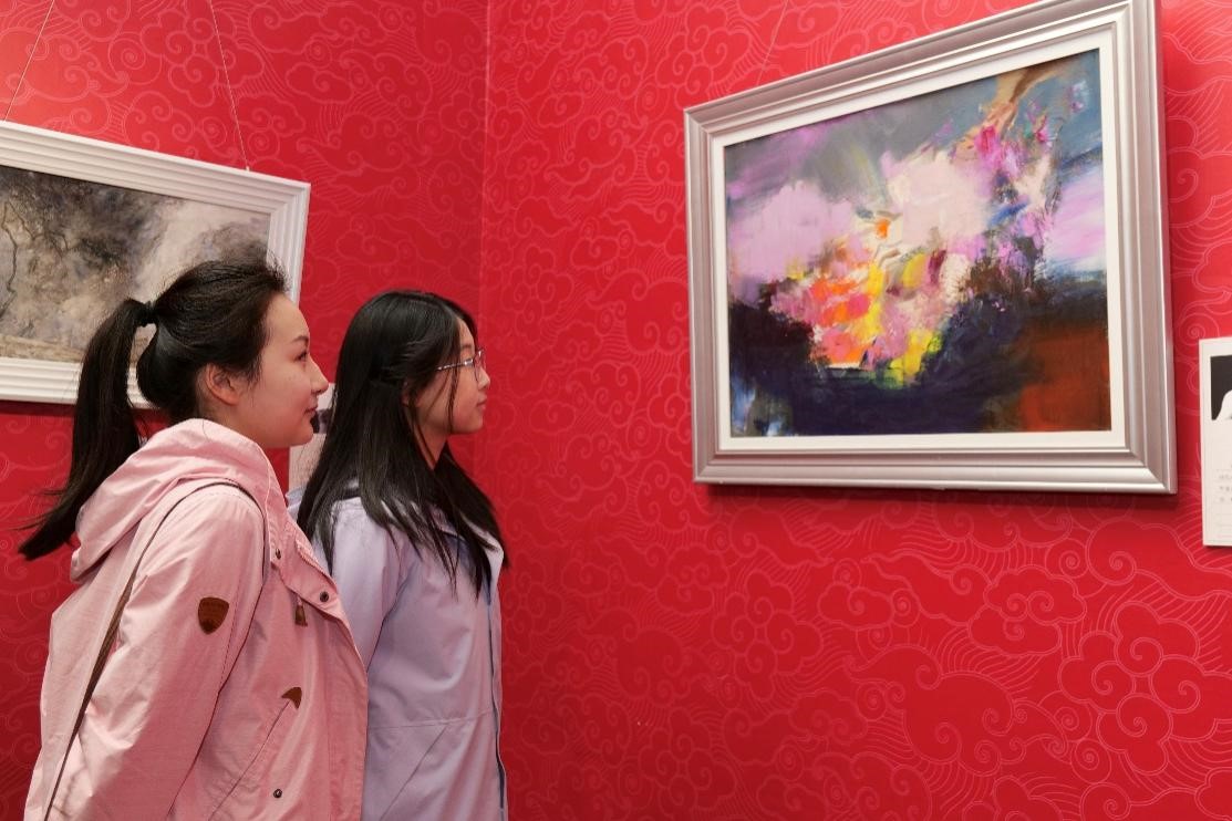 活动的重要一站是城墙博物馆内“汉风同途”徐州中国画·油画艺术对话展。漫步展厅,美术系学子们驻足细品,时有低语交流。有学生感慨,透过宣纸上的山水氤氲,仿佛看到了汉代画像石中奔涌的气韵被当代笔墨重新唤醒;也有学生在油画作品前凝神良久,惊叹于西方材料竟能如此酣畅地传达出东方审美中的留白与意境。“原来传统不是封存的标本,而是可以不断生长的活水源泉。”一位身着汉服的2023级学生这样分享自己的观展感受。不少同学表示,这次观展让他们对“如何用画笔讲好徐州故事”有了更直观的理解,也激发了将本土文化元素融入个人创作的热情。墨与彩的交织不再是抽象的概念,而成为可触可感的艺术共鸣,悄然浸润着每一位学子的创作心灵。
