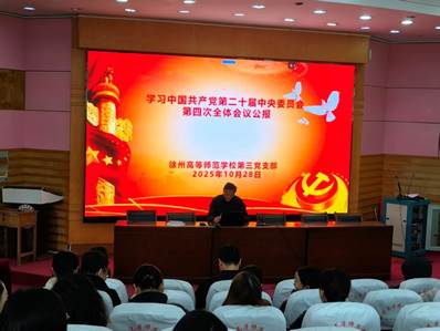 为深入学习贯彻党的二十届四中全会精神,切实把思想和行动统一到党中央的战略部署上来,2025年10月28日,第三党支部组织全体党员教师专题学习《中国共产党第二十届中央委员会第四次全体会议公报》。
