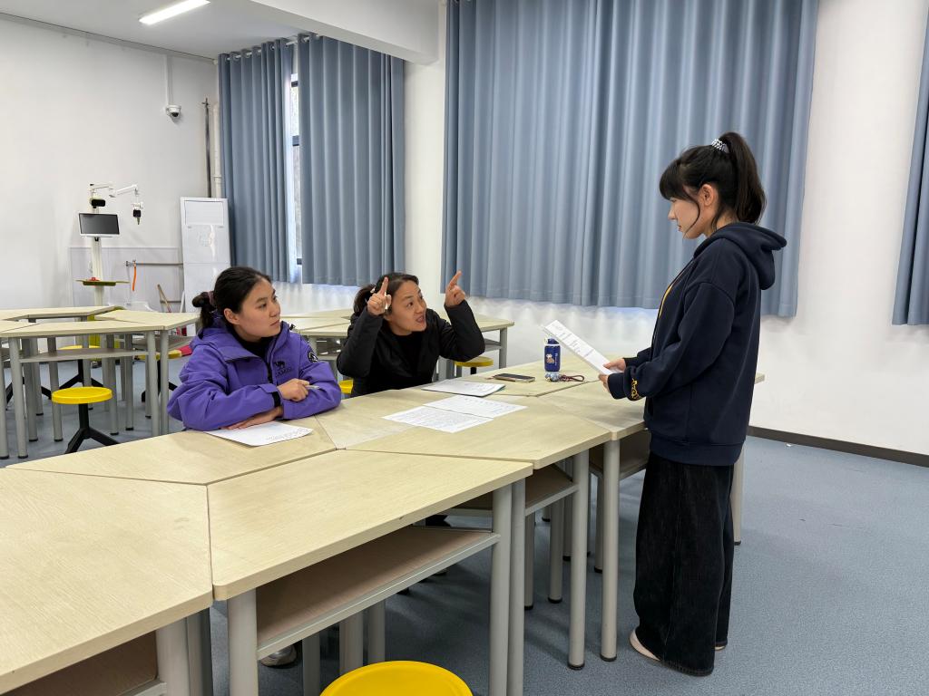 11月26日下午,教资模拟面试活动顺利开展。本次模拟面试共设14个考场,共计4个小时。本次模拟按照正式的国家教师资格考试(面试)程序进行,有28位教师担任了本次模拟的考官。考生们依次进行抽题、备课,有序进行结构化问题答辩和模拟授课。每轮面试后,考官们都针对每位学生的面试表现进行针对性评价与反馈。活动结束后,考官们又整合整体情况,提出多项共性问题及改进意见,并就面试着装、礼仪、肢体语言、语速控制等具体细节与考生进行沟通和提醒。