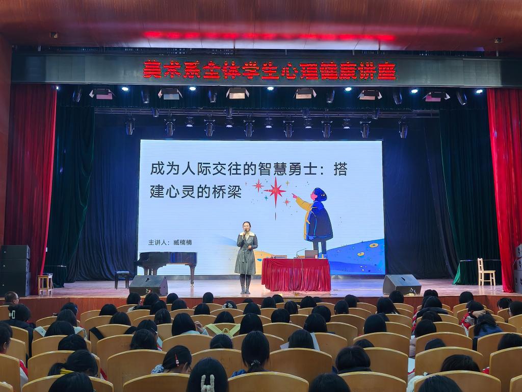2026年3月16日,为提升学生心理素质,保障新学期学习生活顺利开展,美术系全体学生齐聚学校大礼堂,参加了由臧楠楠老师主讲的心理健康教育专题讲座。