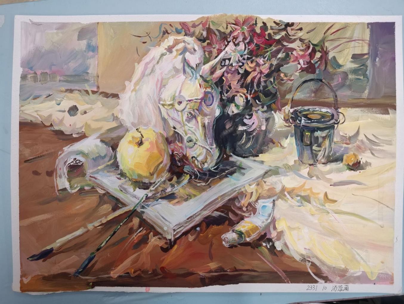 汤蕊萌同学认为,绘画是一场无声的修行。每一幅作品,都藏着个人对生活的观察,对艺术的思索。从线条的勾勒到色彩的铺陈,从明暗的调和到意境的营造,每一次落笔都是一次成长,每一次调整都是一次沉淀。在反复打磨中渐渐懂得,艺术从不是刻意的张扬,而是归于本心的表达,于笔墨间藏情,于色彩中表意,于方寸纸间见天地。此次展出的作品皆是平日用心之作,无关惊艳,只为分享这份与画为伴的欢喜。