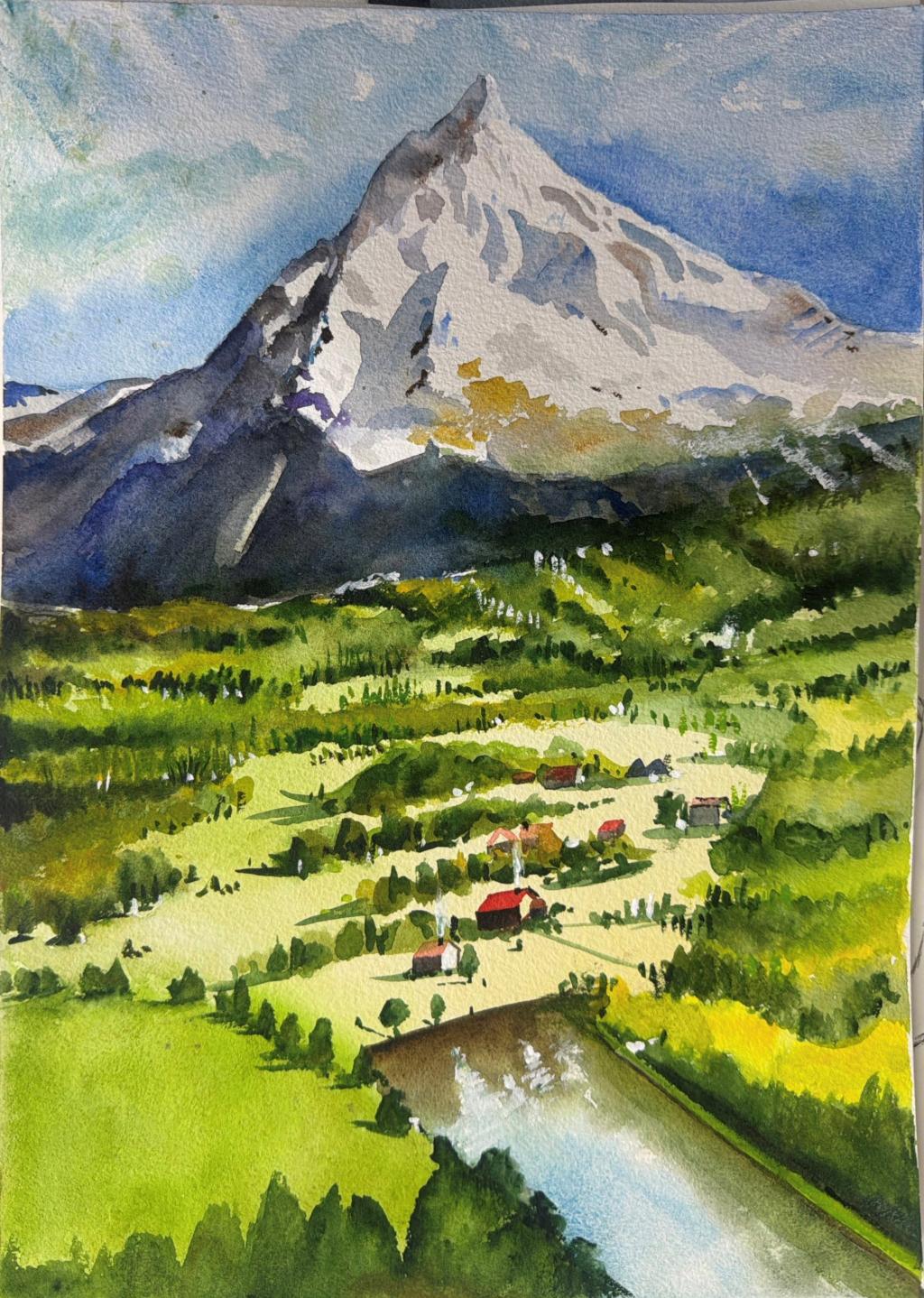 艺术的表达,离不开技法的支撑。展览中的每一幅作品,都是课堂所学技法的灵活运用与创意融合。学子们娴熟驾驭让色彩在纸面自然晕染,尽显水彩独有的通透质感;又以不透明画法塑造立体层次,让物象轮廓分明、肌理饱满。干画法的笔触利落,勾勒出丛林的苍劲、渔船的硬朗;湿画法的晕染柔和,晕染出云雾的缥缈、溪水的灵动;平铺技法营造出开阔的背景意境,留白手法则为画面预留出想象的余地,透明与不透明交织,干与湿碰撞,平涂与留白呼应,多种技法的综合运用,既展现了对课堂知识的扎实掌握,更彰显了年轻创作者们不拘一格的艺术巧思。